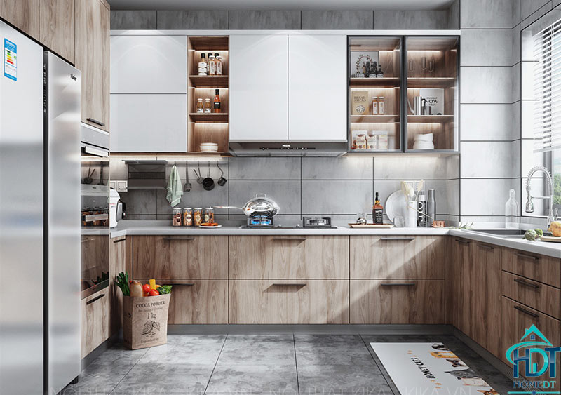 Tủ bếp chữ U MDF phủ Laminate cao cấp