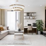 Phòng ngủ lấy gam màu chủ đạo là vàng nâu đậm tạo nên một không gian đậm chất sang trọng của phong cách hiện đại